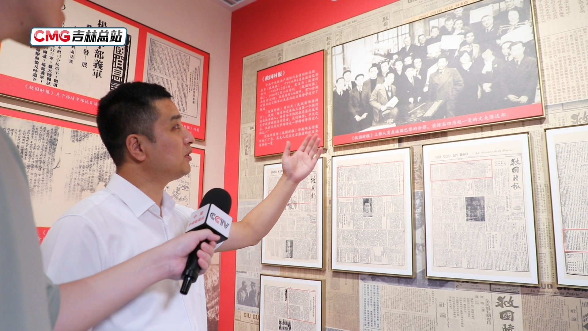 这份报纸背后,还有一段跨越山海的家国记忆。“展板上的这幅照片,前排右四的这一位,名字叫做陈达邦,他在《救国时报》出版期间担任印刷部主任兼印刷厂的厂长,他的夫人,就是大名鼎鼎的抗联女英雄赵一曼。”孙太志指着墙上的照片告诉记者。