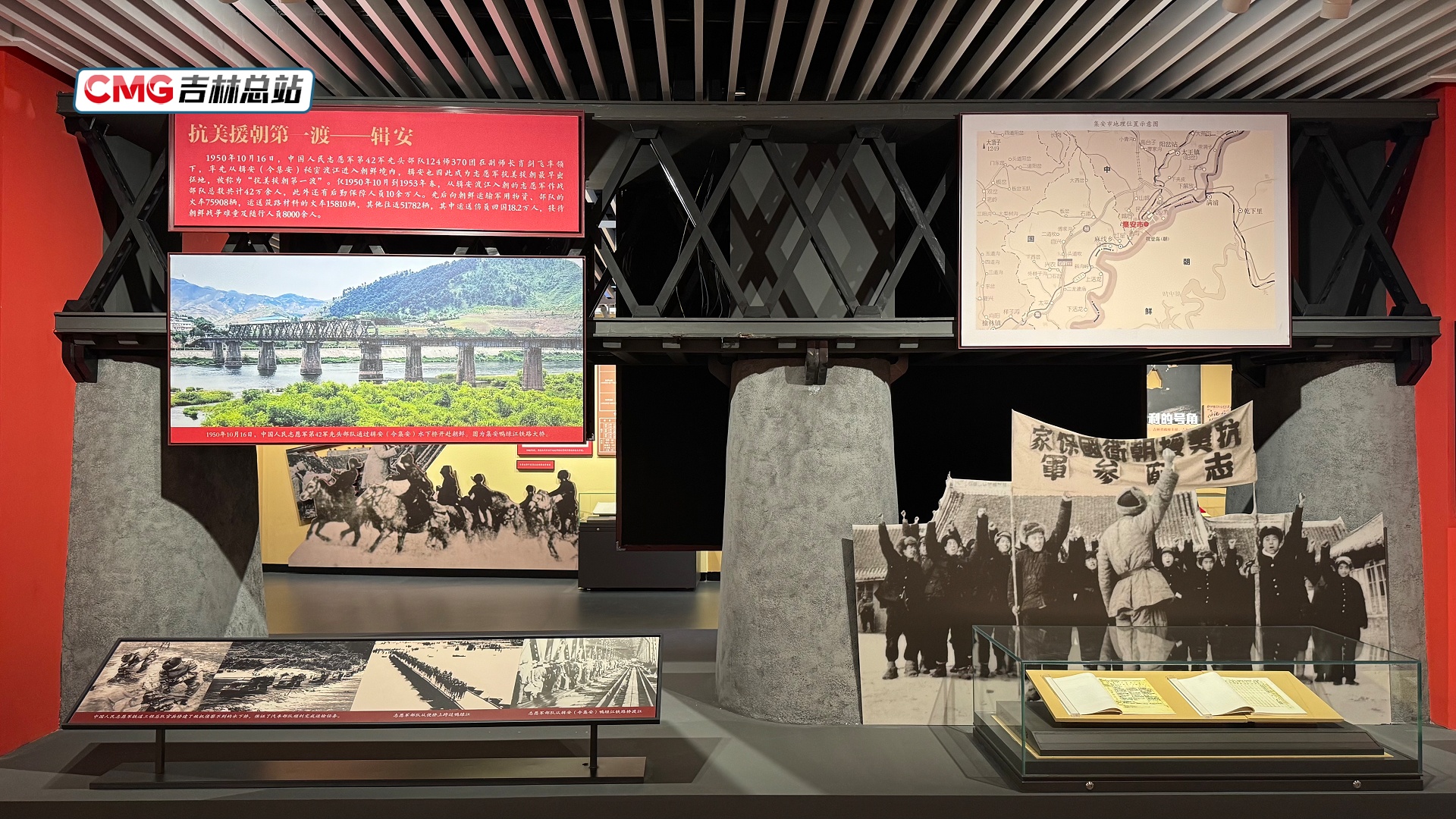 “吉林省是志愿军入朝参战的重要通道,也是志愿军最早出征地。抗美援朝战争期间,有42万名志愿军在辑安(今集安市)集结并由鸭绿江铁路大桥开赴战场,同时,这里还承载了成千上万节车厢军用物资运往朝鲜,运送了一批批回国救治的伤员,因此这座桥也被称为‘抗美援朝第一渡’。”中共吉林省委党史研究室研究二处处长朱巍说。