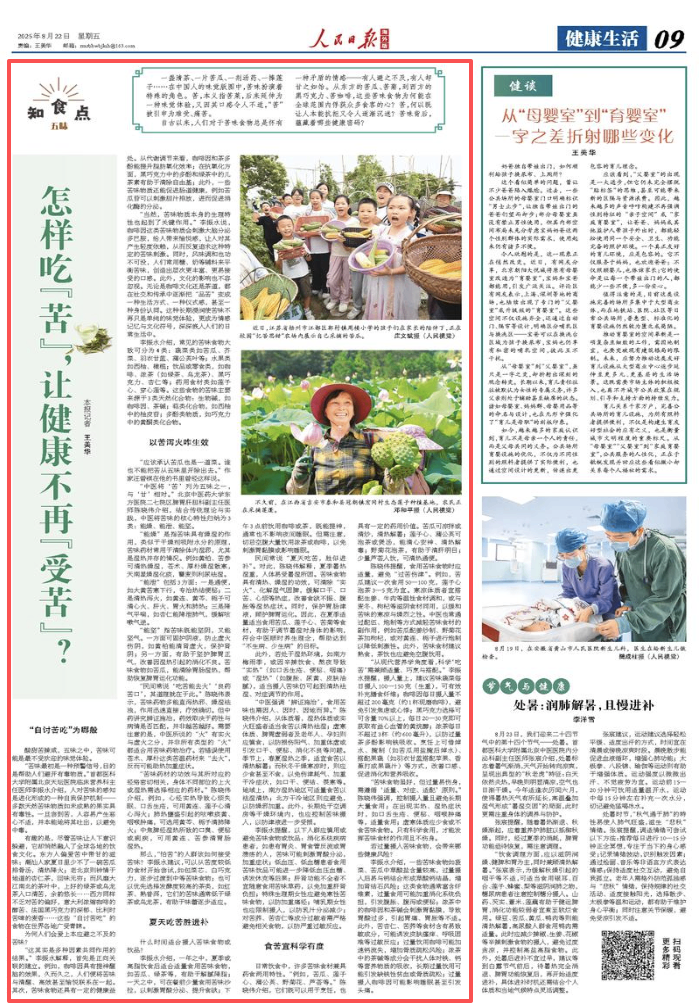 “苦味食物虽好,但过量易伤身,需遵循‘适量、对症、适配’原则。”陈晓伟强调,控制摄入量且避免长期大量食用;在出现实热、湿热症状时,如口舌生疮、便秘、咽喉肿痛等,适量食用;虚寒体质应少食或不食苦味食物。只有科学食用,才能发挥苦味食材的作用且不伤身。