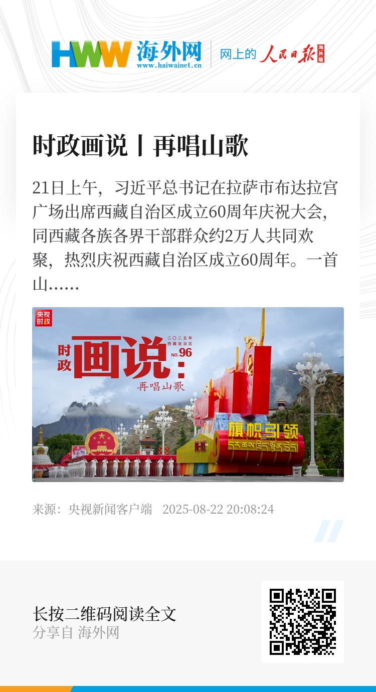21日上午,习近平总书记在拉萨市布达拉宫广场出席西藏自治区成立60周年庆祝大会,同西藏各族各界干部群众约2万人共同欢聚,热烈庆祝西藏自治区成立60周年。