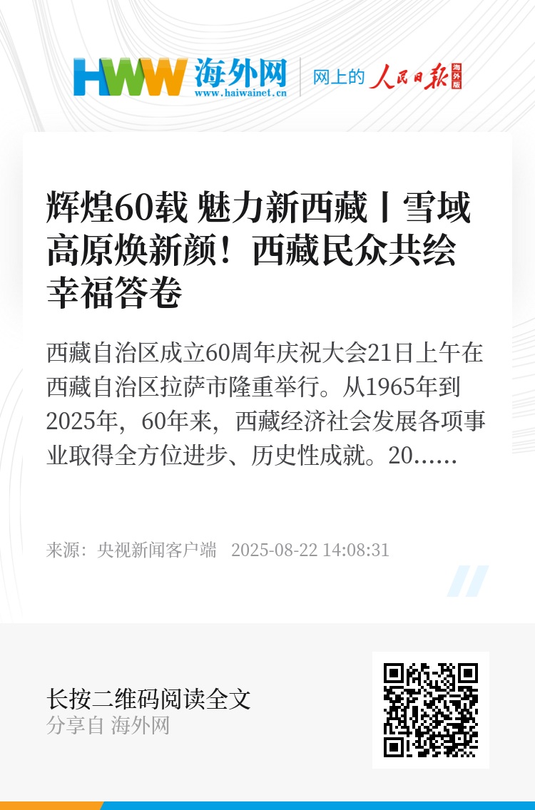 刚刚过去的2025年上半年,西藏经济社会发展呈现出强劲的活力,全区实现生产总值1382.72亿元,同比增长7.2%,增速连续多个季度位居全国前列。民生持续改善,全体居民人均可支配收入同比增长7.6%。发展动能不断集聚,绿色矿业、清洁能源等优势产业加速布局;1—6月,3218万多人次抵达西藏,旅游收入超315亿元。新时代的西藏正以开放的姿态拥抱世界。