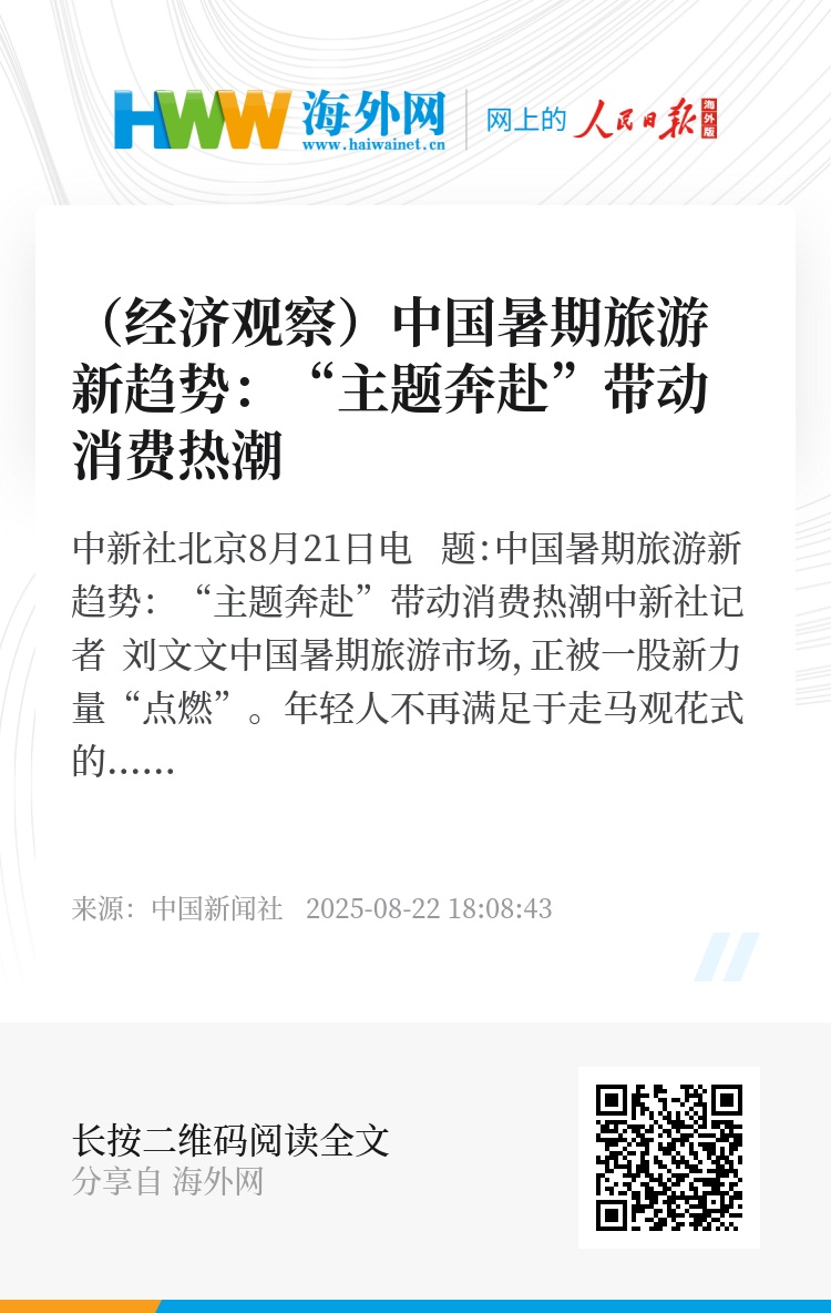 中新社北京8月21日电 题:中国暑期旅游新趋势:“主题奔赴”带动消费热潮
