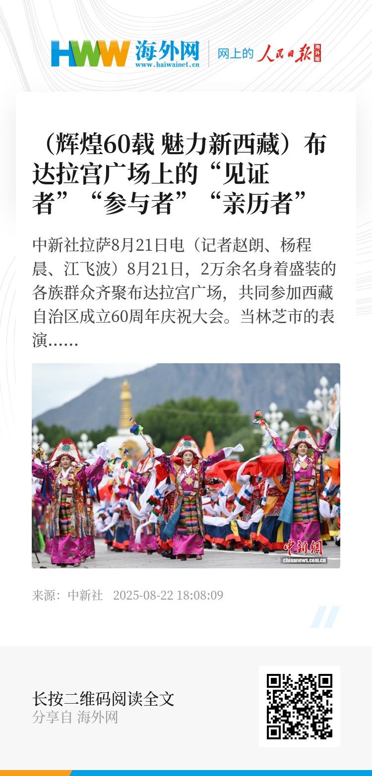 21日的布达拉宫广场上,像李嘉琪一样往来于雪域高原和内陆省份的观众不在少数。他们是60年来西藏与内地经济、文化、人员双向交流的参与者,更是雪域高原一甲子沧桑变化的见证人。