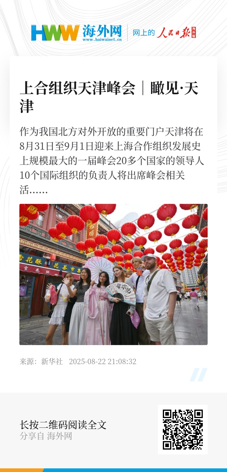 2025年8月14日,上合国家学生在天津古文化街留影。新华社记者李然摄