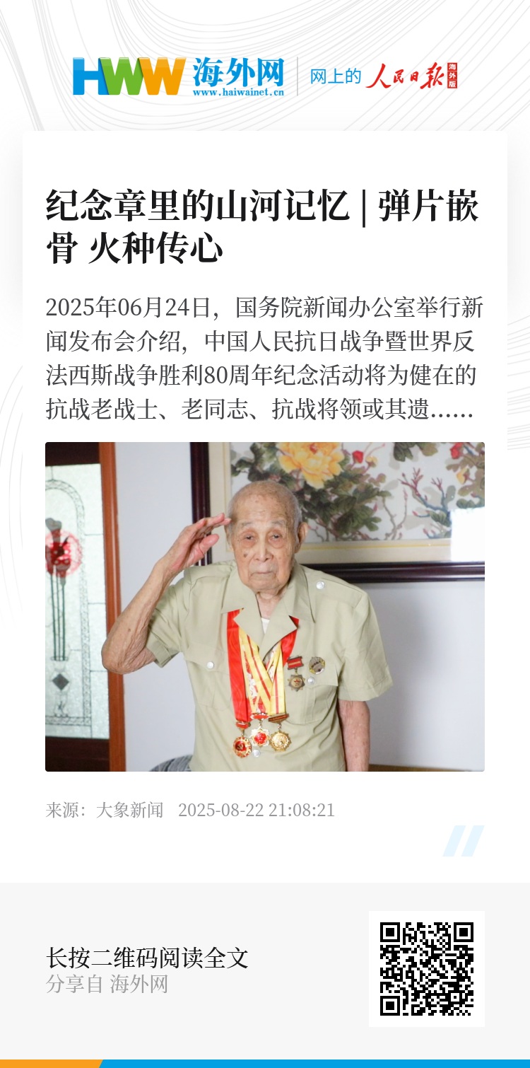 记者走访多位获颁纪念章的抗战老兵,倾听他们追忆烽火中的抗战往事,重温那段峥嵘岁月。