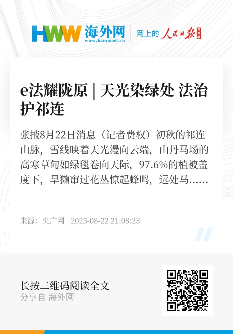 在这片流动的生态画卷里,法治的音符正与自然的韵律共振。甘肃张掖以“绿水青山就是金山银山”为弦,让法律条文如祁连融雪般浸润大地:既护着雪线、草甸、林海的生态本底,也滋养着牧人、村民的日子,让“天光染绿处”,总有法治护航的暖意。