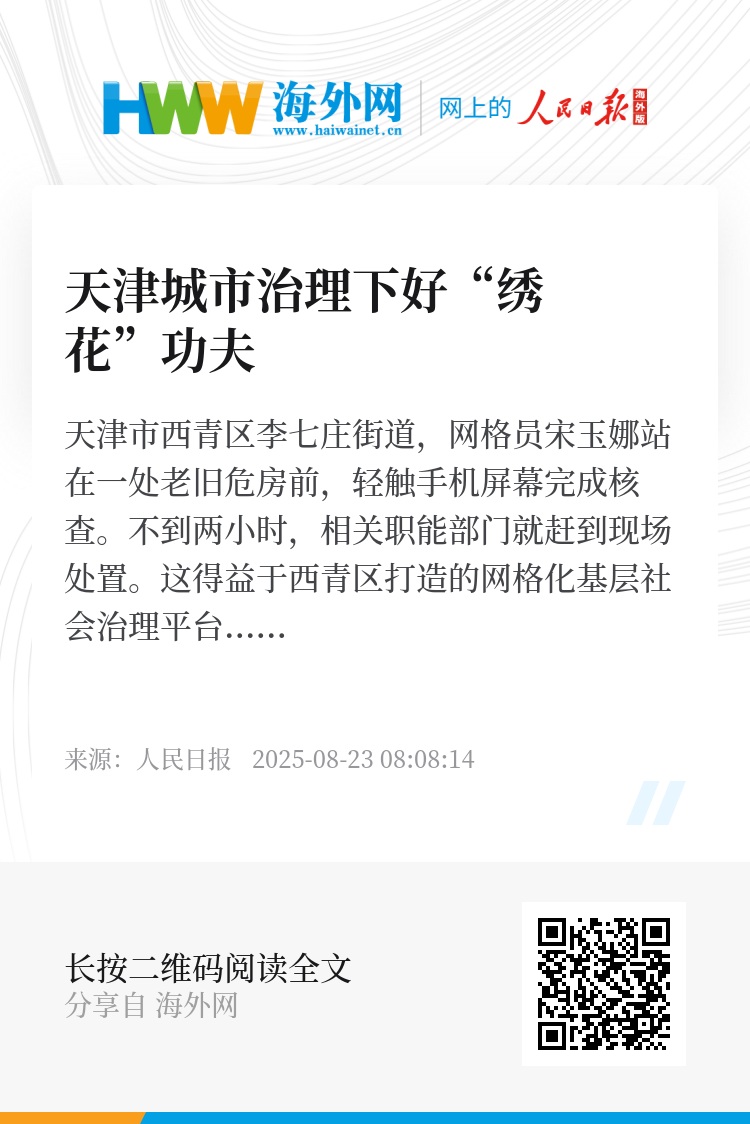 天津市西青区李七庄街道,网格员宋玉娜站在一处老旧危房前,轻触手机屏幕完成核查。不到两小时,相关职能部门就赶到现场处置。