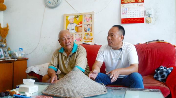 王脉凤的外孙闫桂亮老人(左)讲述自己的外祖母王脉凤