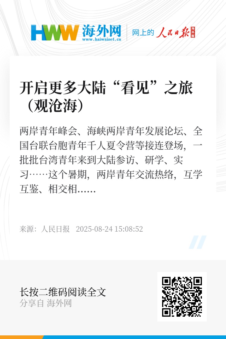 一次“看见”之旅,可以改变一个人的认知;而一群人的“看见”,则可以改变一个世代的叙事。每一次“亲眼看看”,都是对民进党当局“去中国化”和污蔑抹黑的纠偏与校正。这股由一个个“首来族”汇聚而成的“眼见为实”的洪流,不断冲刷着人为制造的偏见与隔阂,推动两岸青年增进彼此了解、走向心灵契合。