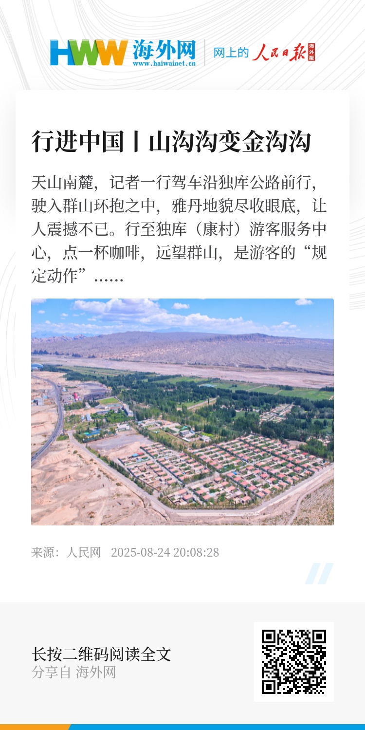 斗转星移,康村不小康已成为过去。放眼望去,红瓦白墙房屋整齐排列,檐下庭前的花朵迎风舒展,南来北往的游客笑语盈盈,勤劳的村民们在致富路上步履铿锵……曾藏于天山脚下的山沟沟,褪去旧日摸样,已然成为幸福的金沟沟。(孙海峰、唐晓勇、王欲然、唐佳、唐宋、杨睿、陈新辉)