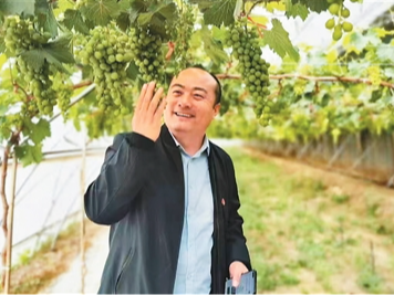宁夏银川市贺兰县习岗镇“田长”王庆在五星村巡田,查看葡萄种植情况。