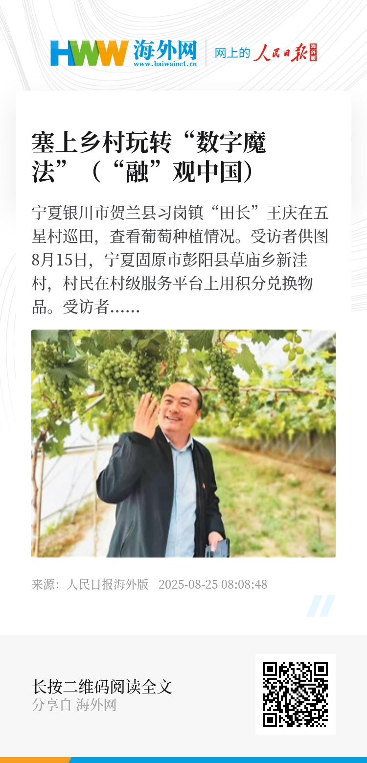 积分制与数字化的结合,正悄然改变着村庄面貌。像新洼村这样,借助数字技术赋能乡村治理的实践正在宁夏遍地开花,数字技术正成为推动乡村全面振兴的重要力量。(记者 焦思雨)