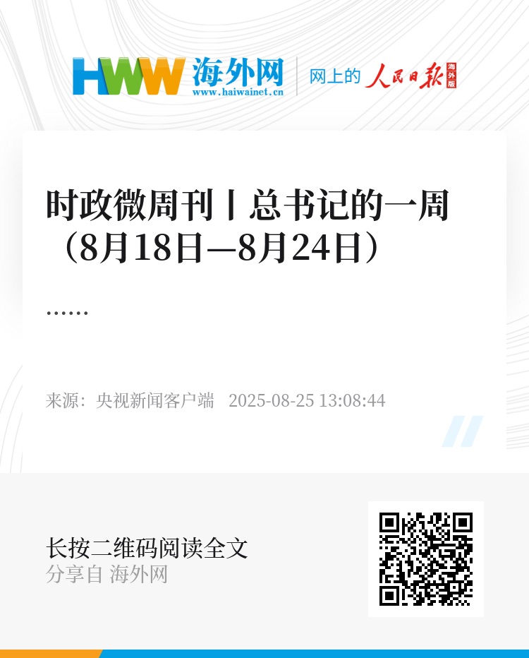时政微周刊丨总书记的一周(8月18日—8月24日)