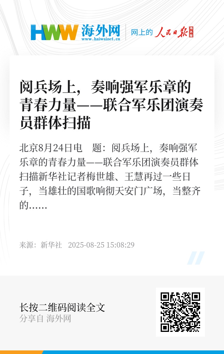 新华社北京8月24日电 题:阅兵场上,奏响强军乐章的青春力量——联合军乐团演奏员群体扫描