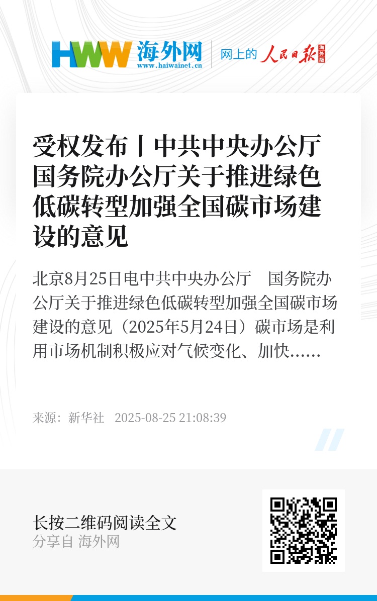 中共中央办公厅 国务院办公厅关于推进绿色低碳转型加强全国碳市场建设的意见