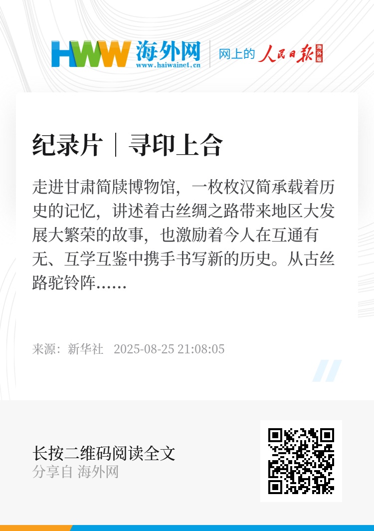 走进甘肃简牍博物馆,一枚枚汉简承载着历史的记忆,讲述着古丝绸之路带来地区大发展大繁荣的故事,也激励着今人在互通有无、互学互鉴中携手书写新的历史。