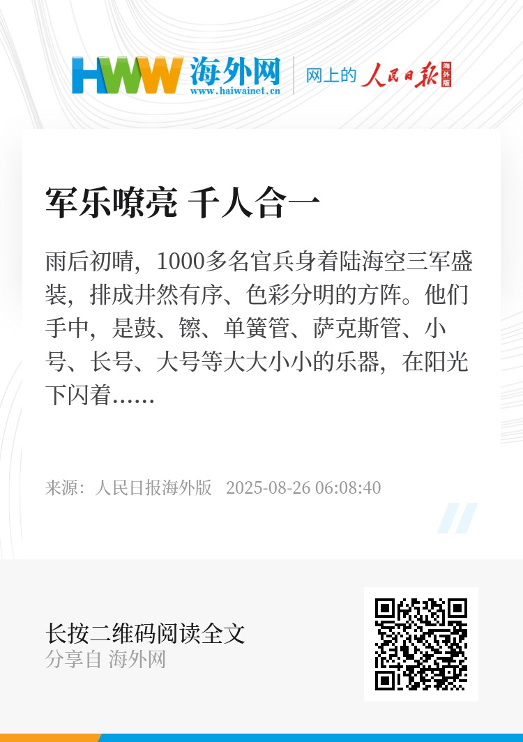 雨后初晴,1000多名官兵身着陆海空三军盛装,排成井然有序、色彩分明的方阵。他们手中,是鼓、镲、单簧管、萨克斯管、小号、长号、大号等大大小小的乐器,在阳光下闪着金属光。