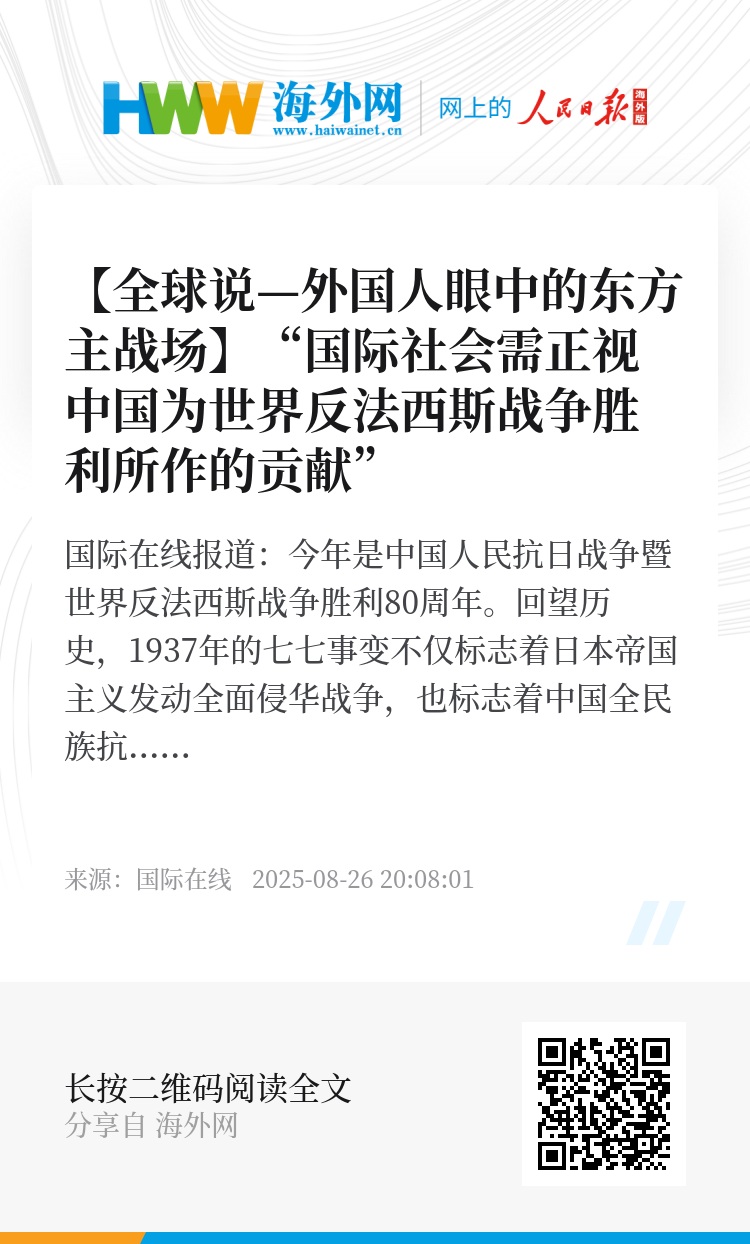国际在线报道:今年是中国人民抗日战争暨世界反法西斯战争胜利80周年。回望历史,1937年的七七事变不仅标志着日本帝国主义发动全面侵华战争,也标志着中国全民族抗战的爆发,由此开辟了世界反法西斯战争的东方主战场。然而,长期以来,国际社会对二战历史的讨论多聚焦于欧洲和太平洋战场,并未全面客观认识东方主战场的意义和价值。中央广播电视总台国际在线与央视网联袂推出重磅系列访谈节目“全球说—外国人眼中的东方主战场”,邀约多名国际权威学者,重溯历史经纬,评述中国军民为世界反法西斯战争胜利作出的决定性贡献。