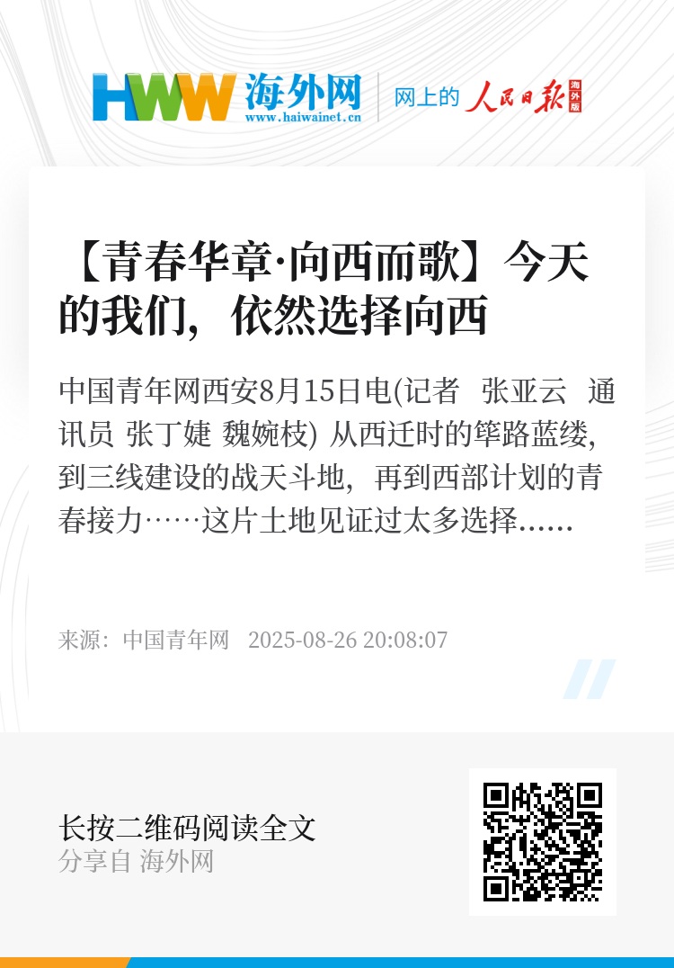 中国青年网西安8月15日电(记者 张亚云 通讯员 张丁婕 魏婉枝) 从西迁时的筚路蓝缕,到三线建设的战天斗地,再到西部计划的青春接力……这片土地见证过太多选择:有人告别繁华,在戈壁滩上写下“科学报国”,有人扎根讲台,在煤油灯下点亮知识的星火。如今,又有年轻人接过行囊,让青春在乡村振兴中生根发芽。不同的年代,同样的答案:当祖国需要时,他们总是说——“我去!”