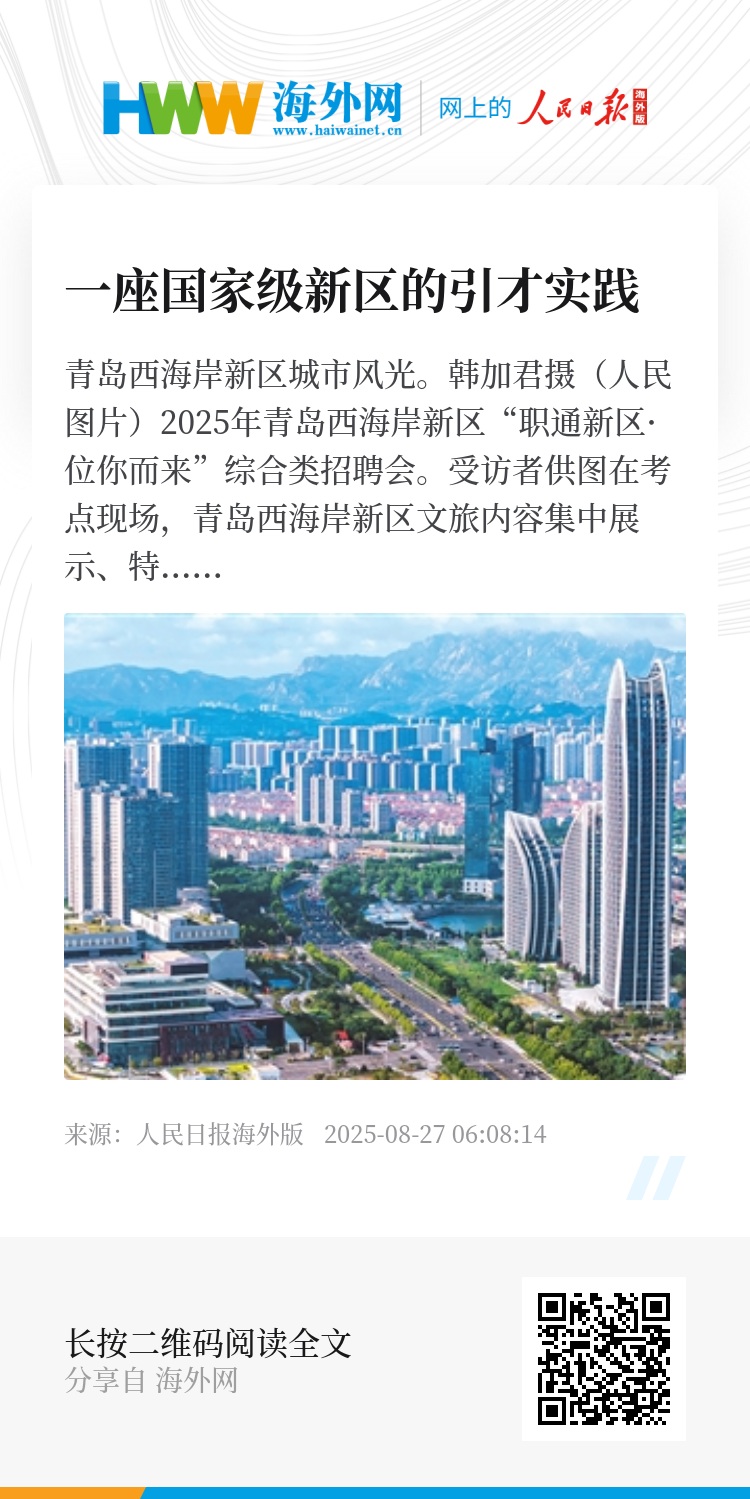 新区集聚了中国海洋大学、中国石油大学等17所知名高校,2024年,5.6万名驻区高校毕业生开启职业新征程,其中25.4%选择了留在这里就业创业。