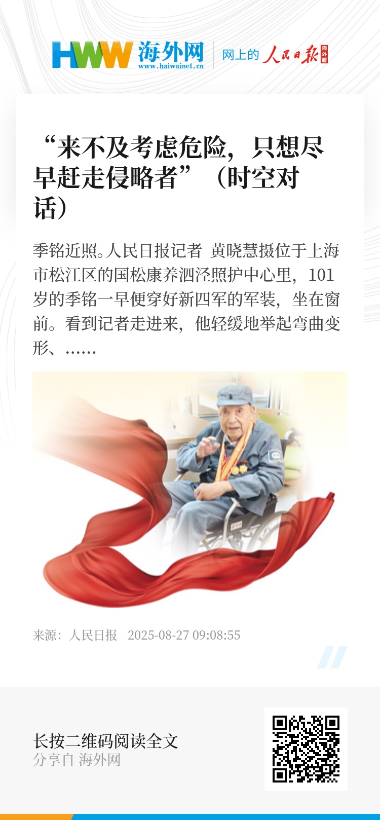 当被问起从事“潜伏”工作时有没有迟疑过,季铭说:“来不及考虑危险,只想尽早赶走侵略者。”