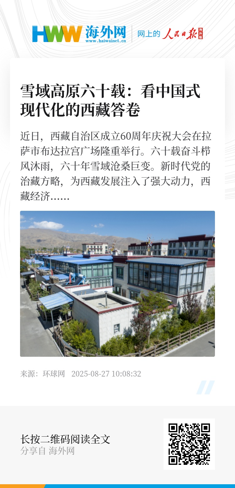 六十年风雨兼程,六十年沧桑巨变,雪域高原见证了西藏开放繁荣的历程,这不只是西藏的跨越,也是中国与世界对话的生动篇章。从历史深处走来,西藏正以高原的坚韧与豪迈,屹立于世界屋脊之上,成为中华民族伟大复兴征程中的一颗璀璨明珠。未来的西藏,将在人类命运共同体的伟大进程中,留下属于世界屋脊的铿锵足音。