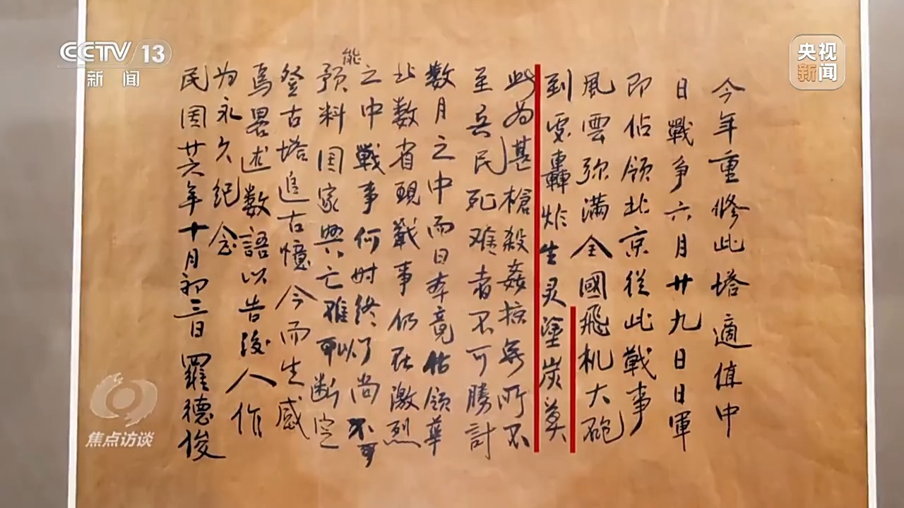 今年是中国人民抗日战争暨世界反法西斯战争胜利80周年。在这场决定人类命运的伟大斗争中,中国作为东方主战场,以3500万同胞伤亡的沉重代价,为世界反法西斯事业作出了不可磨灭的历史贡献。为铭记这段用鲜血和生命铸就的壮丽史诗,《焦点访谈》推出特别节目“历史照耀今天”。今天,我们首先重返1931年九一八事变的历史现场,揭开中国人民14年不屈抗战的序幕。