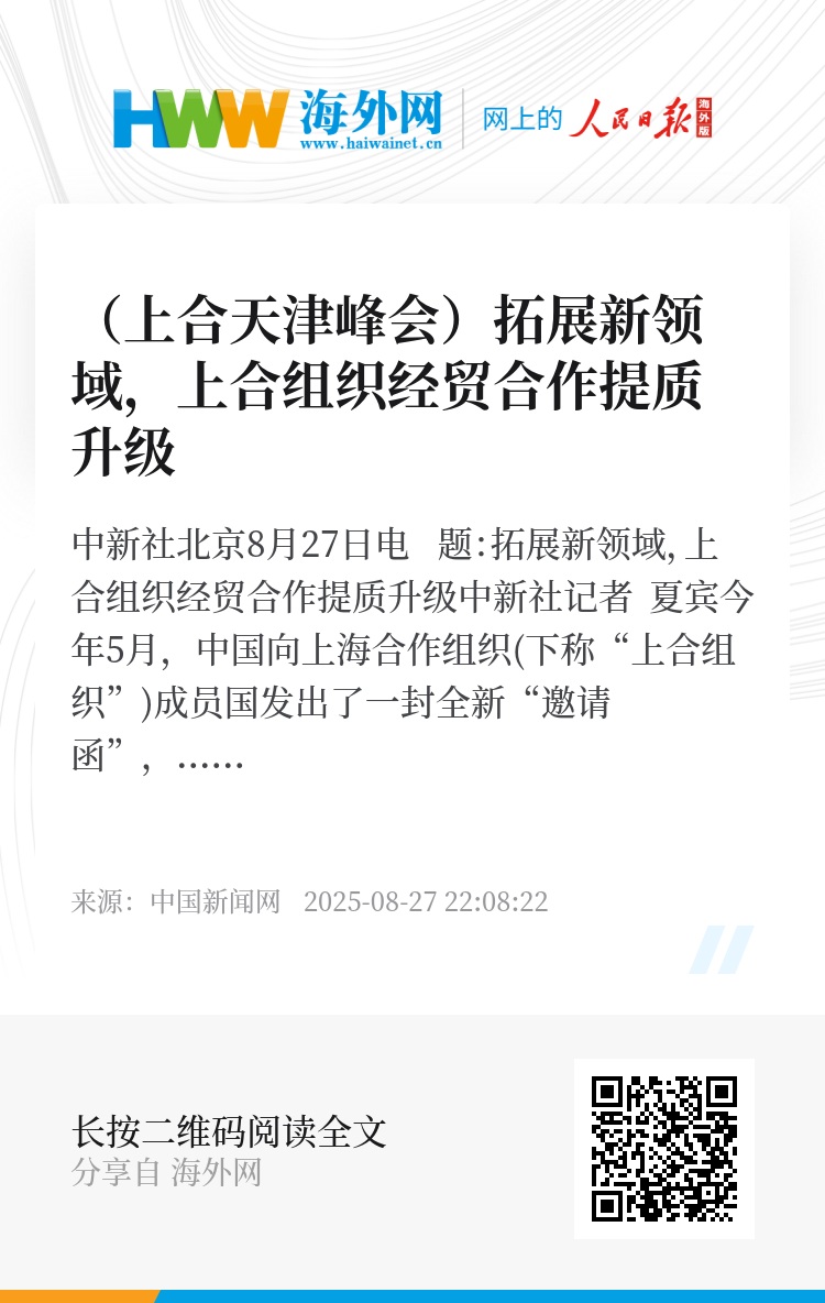 中新社北京8月27日电 题:拓展新领域,上合组织经贸合作提质升级