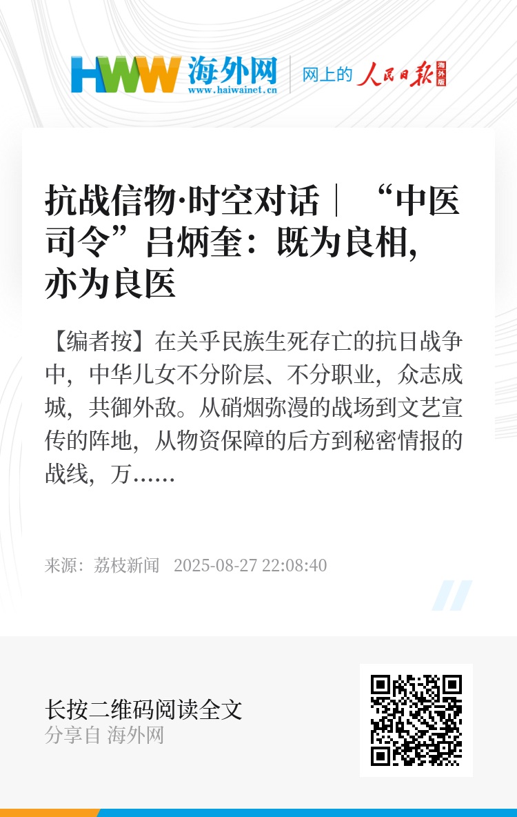 在中国人民抗日战争暨世界反法西斯战争胜利80周年之际,荔枝新闻推出《抗战信物·时空对话》系列报道,以“信物”为媒,邀请当代青年与抗战亲历者的后人展开对话,重温那段波澜壮阔的岁月,探寻跨越时代的青春信念。