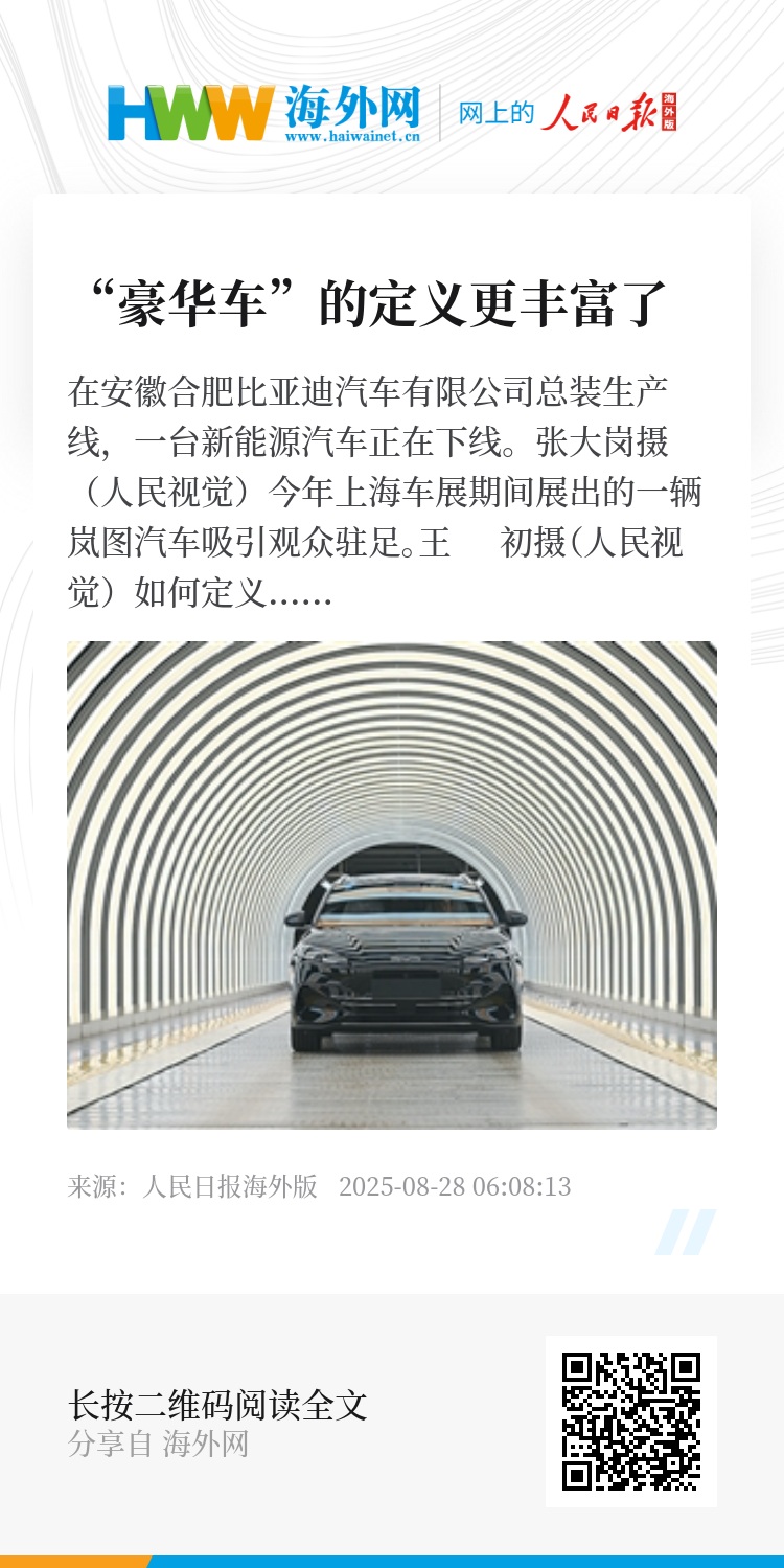 两相对比,反映出中国汽车品牌向高端升级的强劲势头。“很多新能源汽车产品做到了可越级媲美较高级别燃油车的使用体验,使得消费者对传统豪华车品牌的黏性和品牌溢价的接受度大幅降低,对豪华车的需求开始转向更高的科技感、品质感、出行乐趣、个性化和服务体验等。”周玮说。中国汽车的高端化之路不仅改变了消费者的认知,更推动了全球汽车产业的智能化、电气化变革。(本报记者 徐佩玉)