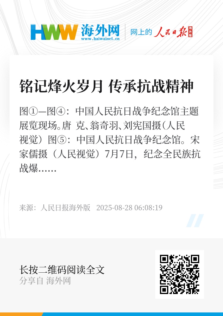 正因如此,带孩子观看抗日主题展,成为今年许多家庭假期出行的新选择。在社交媒体上,来此参观的网友留言:“每一件展品都在无声呐喊。这里铭刻着民族不屈的脊梁,记录着先辈用血泪换来的和平。重温抗战历史,汲取前行力量。”