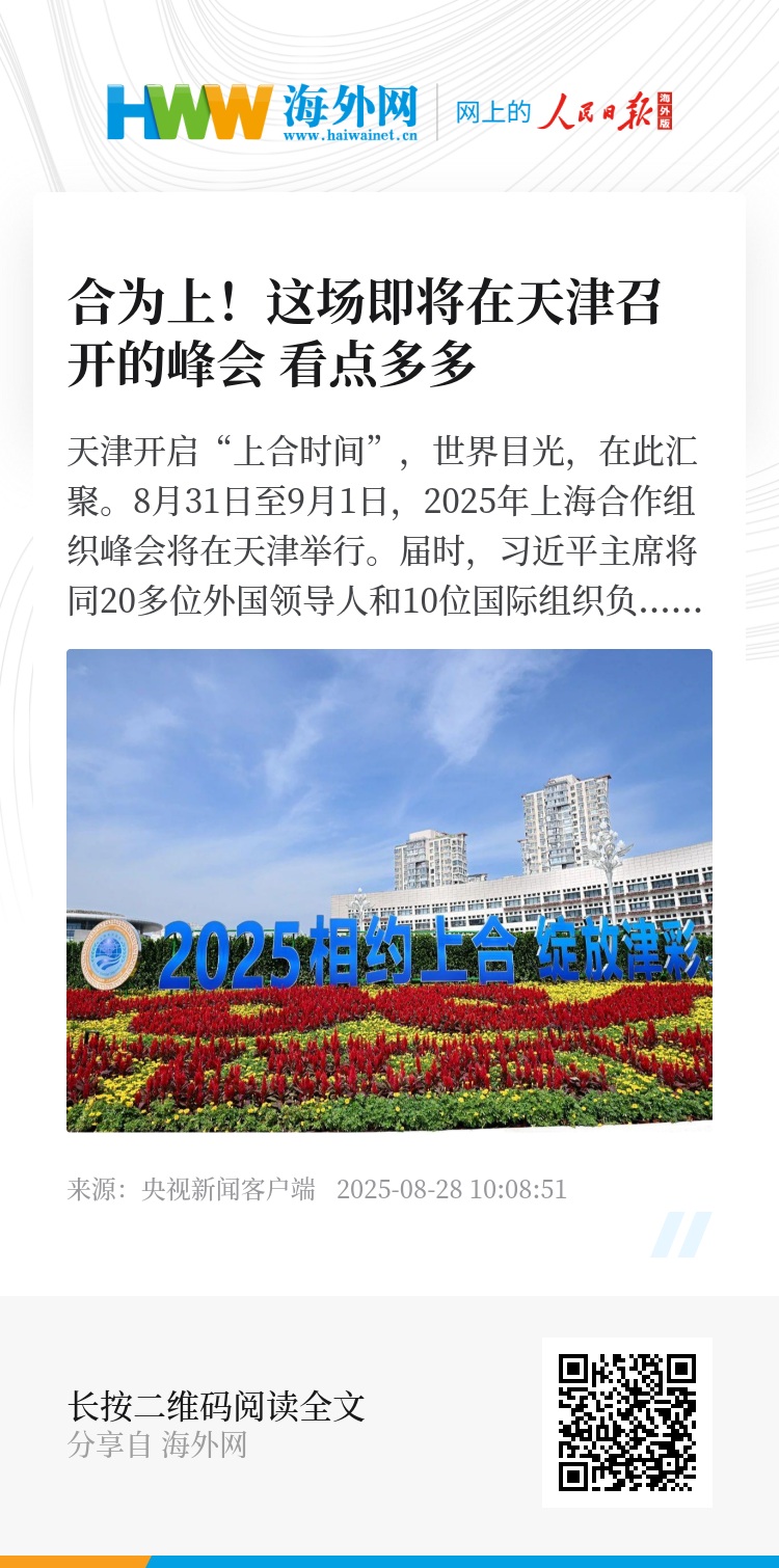 8月31日至9月1日,2025年上海合作组织峰会将在天津举行。届时,习近平主席将同20多位外国领导人和10位国际组织负责人聚首海河之滨。
