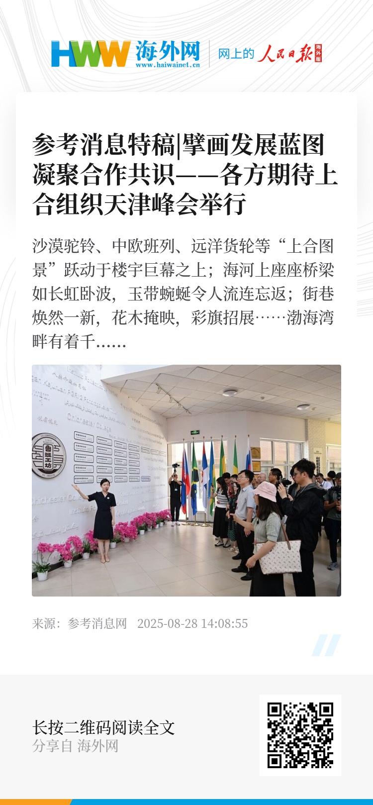 缔结20对友城、在相关国家建设了10个鲁班工坊;2024年,与上合组织国家进出口额达895亿元,同比增长21.9%……走在开放前沿的天津一直与上合组织国家往来密切。