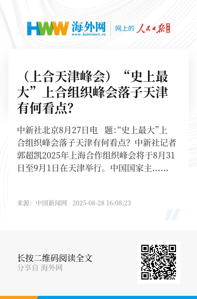 中新社北京8月27日电 题:“史上最大”上合组织峰会落子天津有何看点?