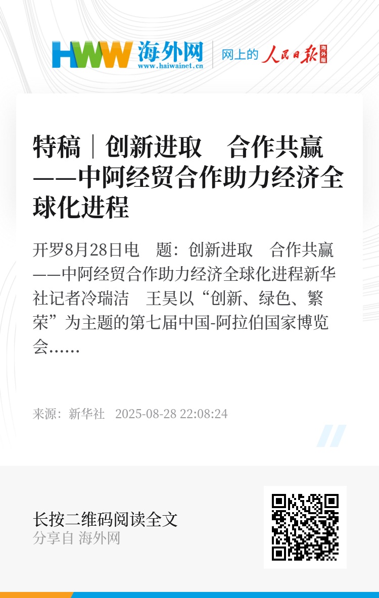 新华社开罗8月28日电 题:创新进取 合作共赢——中阿经贸合作助力经济全球化进程