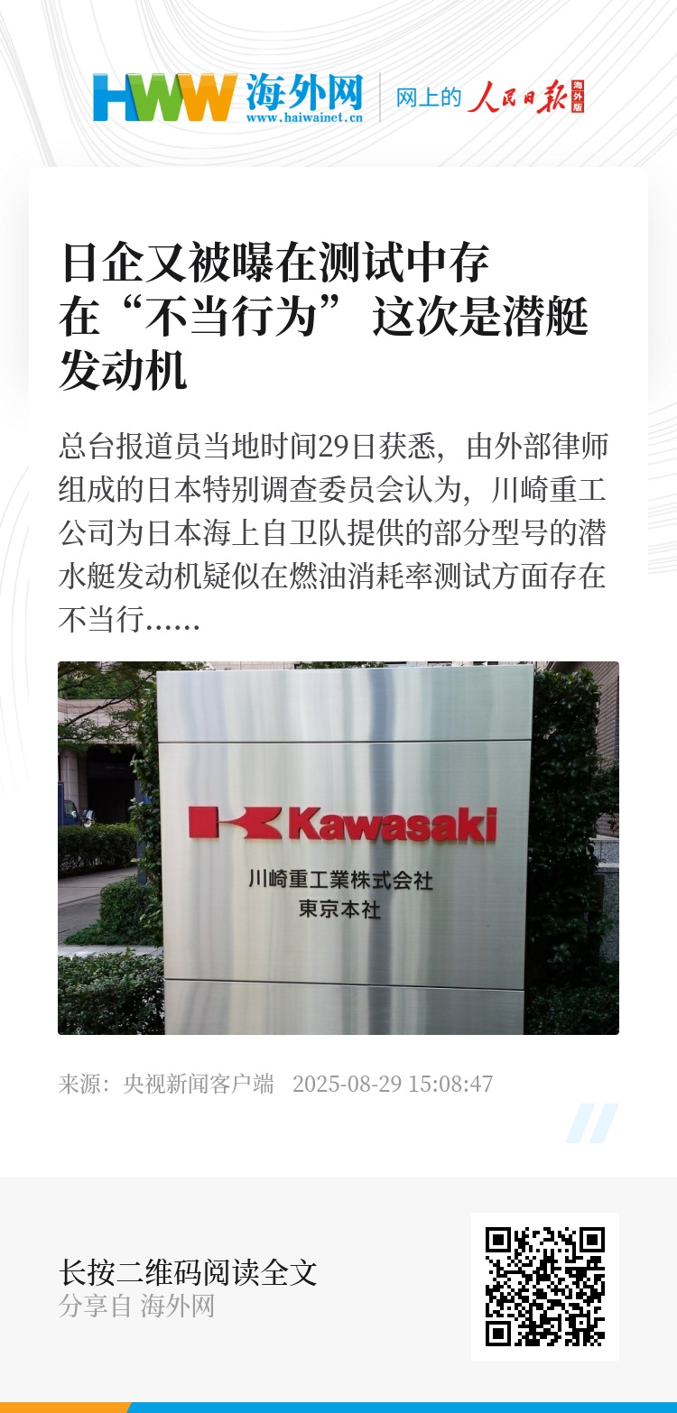 川崎重工称,截至目前认为相关情况不会对日本海上自卫队潜水艇的运行或安全造成影响。该公司将全力配合特别调查委员会,并通过加强合规和管理体系以恢复信任。