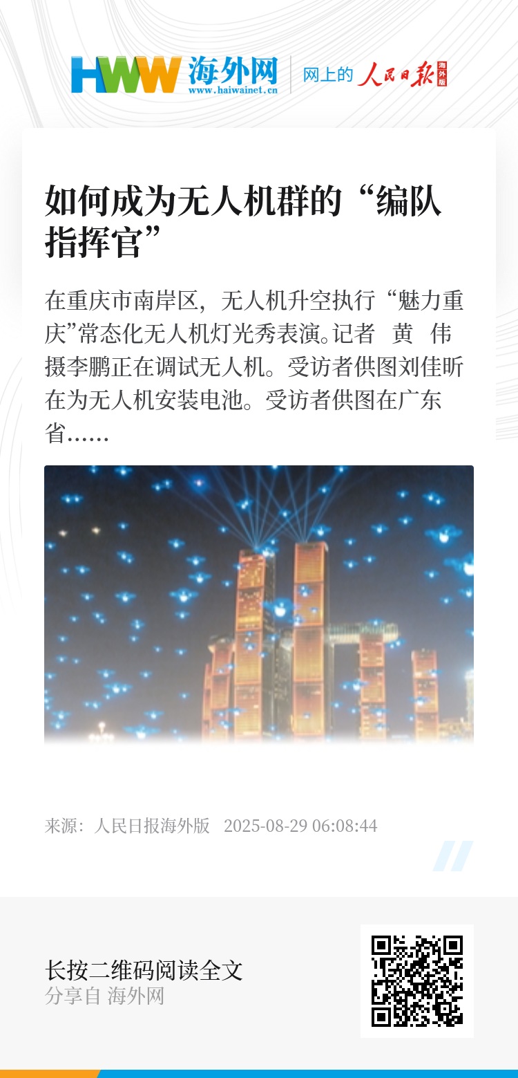 “全部检查完毕,才能等待起飞指令。”刘佳昕说,这种对细节的苛求源于无人机表演极低的容错率。“任何细微的疏忽都可能导致整场表演的失败。”