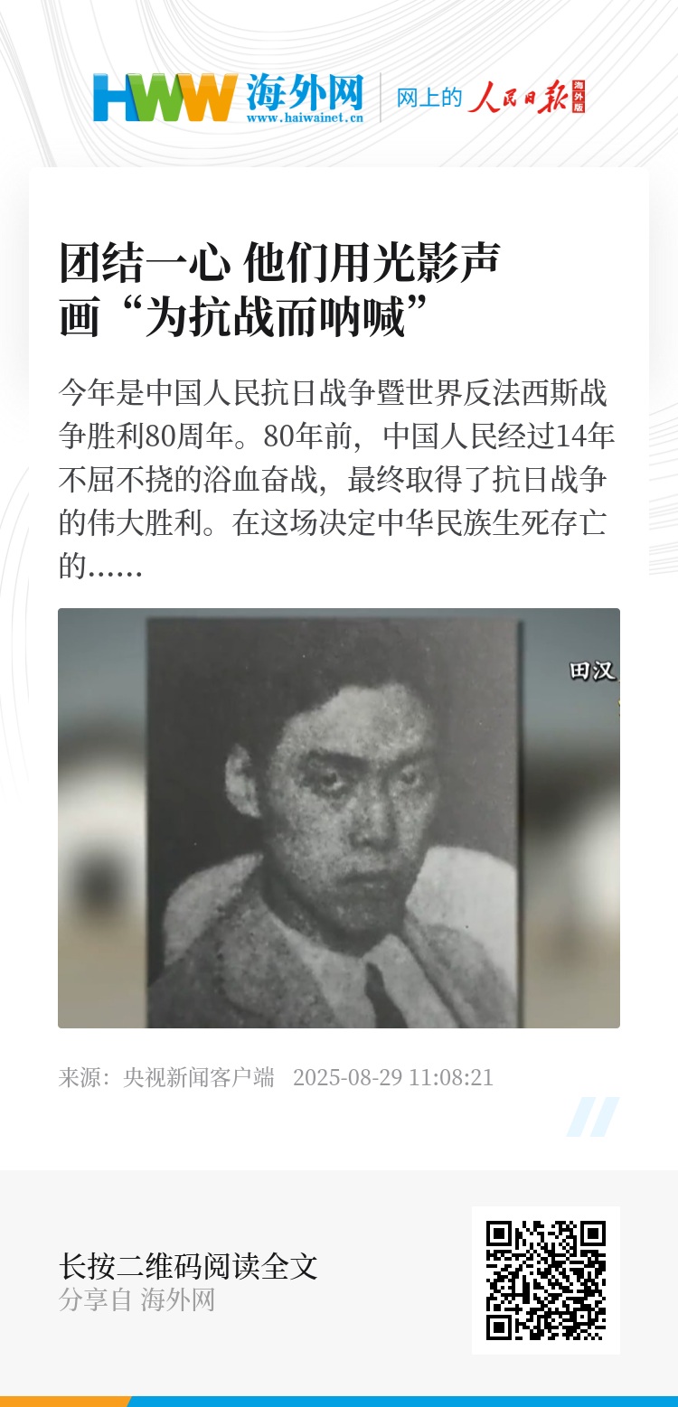 中国文艺评论家协会副主席 胡智锋:这部影片在1935年上映之后,迅速成为表达全中国人民共赴国难民族的意志和决心,和喊出这种时代最强音的抗战艺术动员。由一部抗战电影延伸出中华民族一种不屈不挠的抗争精神,这是《风云儿女》给我们留下的最宝贵的精神财富。