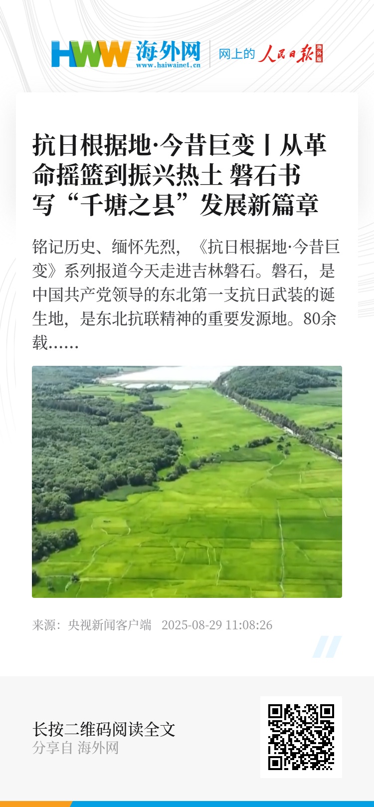 曾经,这里是抗联将士“捐躯赴国难”的战场;如今,这里已成为产业兴旺、生态优美、百姓幸福的振兴热土。抗联精神不是尘封的记忆,而是融入血脉的动力,如同永不熄灭的火炬,照亮磐石新时代奋进之路。
