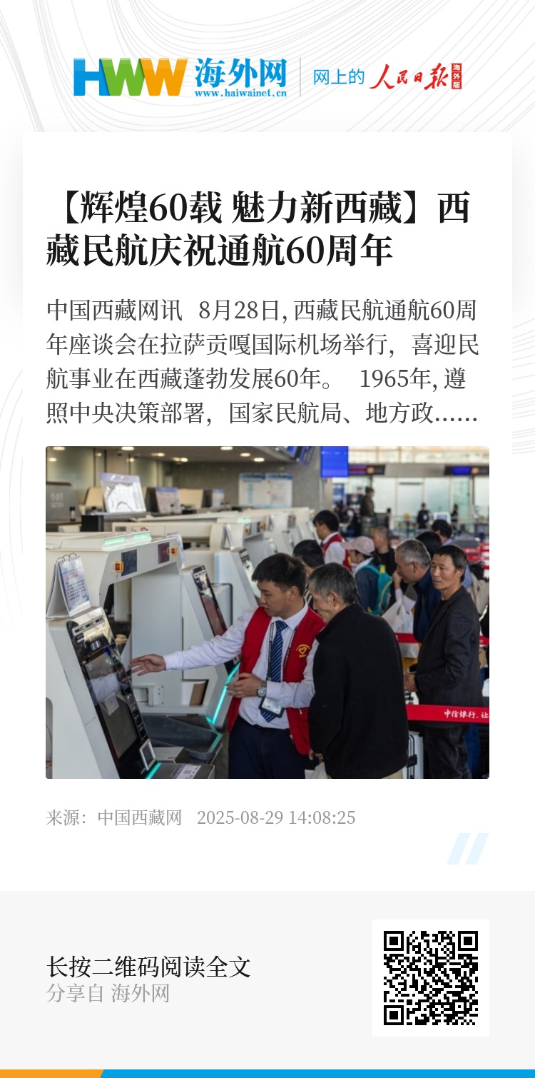 中国西藏网讯 8月28日,西藏民航通航60周年座谈会在拉萨贡嘎国际机场举行,喜迎民航事业在西藏蓬勃发展60年。