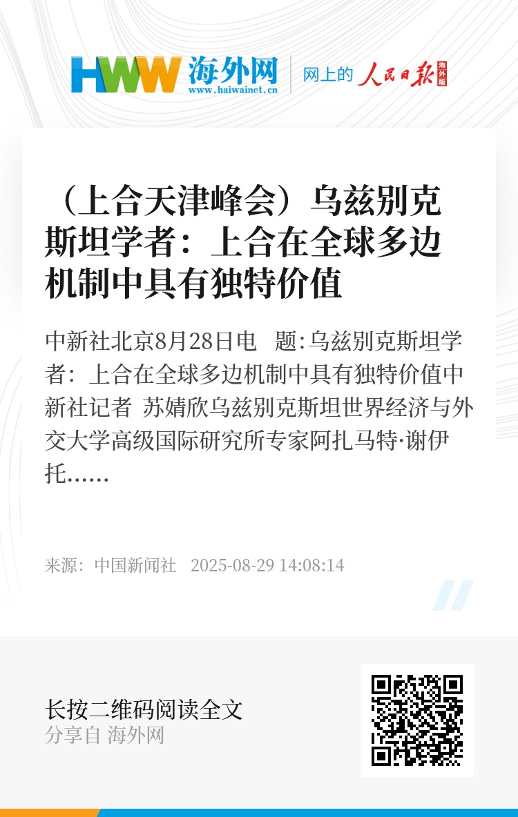 中新社北京8月28日电 题:乌兹别克斯坦学者:上合在全球多边机制中具有独特价值
