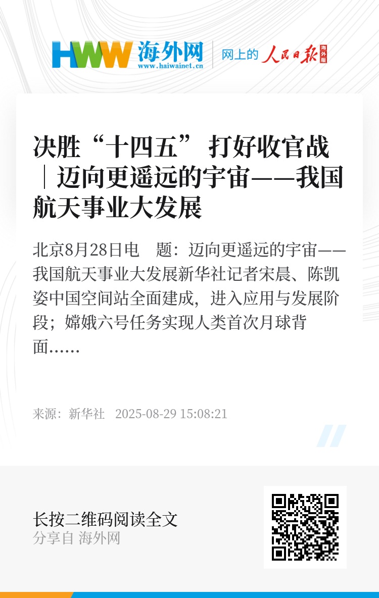 2025年4月24日,伴随着人们热烈的欢呼声,神舟二十号载人飞船发射取得圆满成功。仰望苍穹,中国人自己的“太空之家”熠熠生辉。