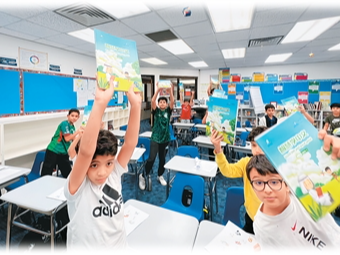 沙特当地学生使用由智慧宫研发的《智慧学中文》少儿版教材。
