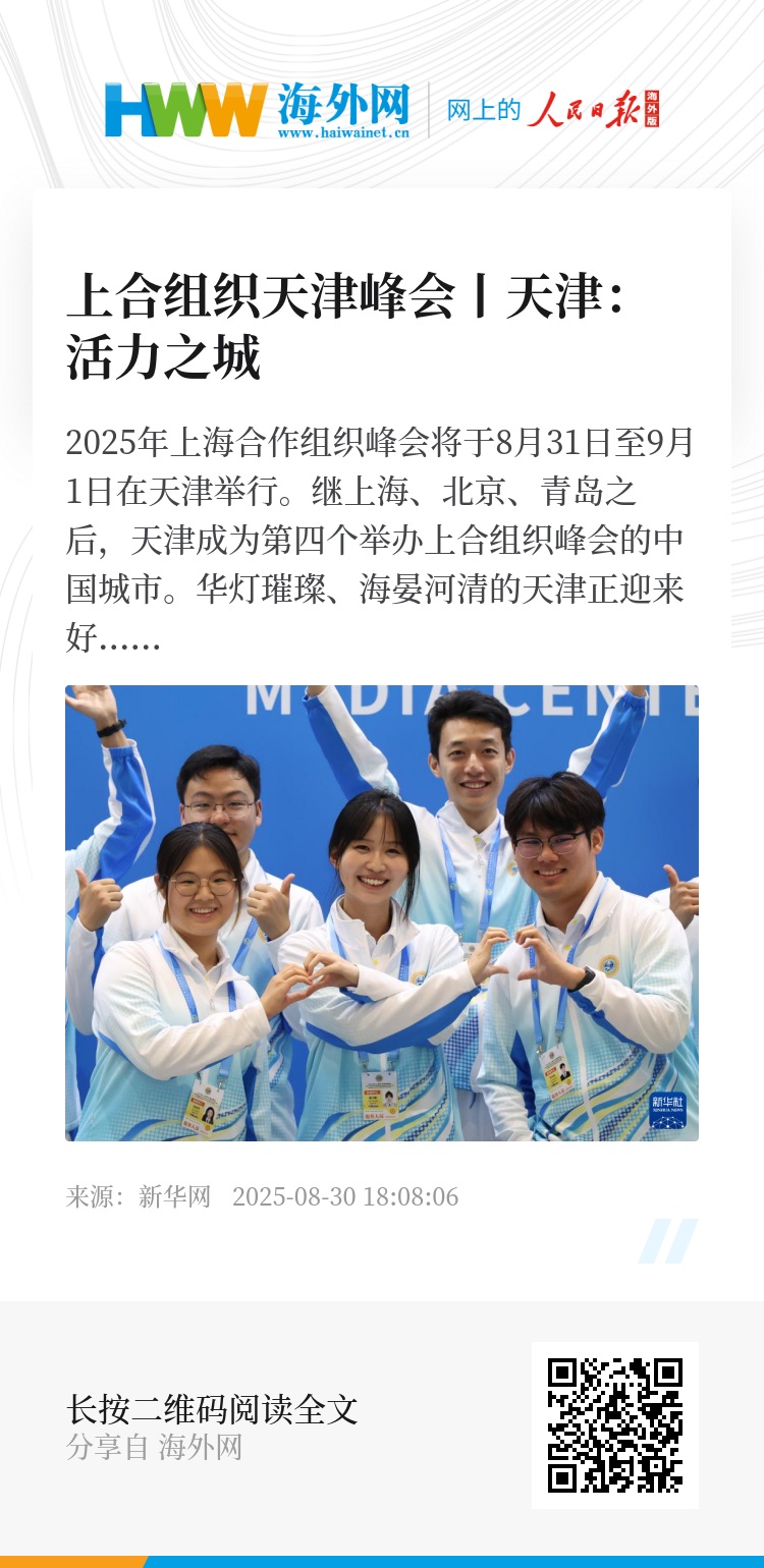 2025年上海合作组织峰会将于8月31日至9月1日在天津举行。继上海、北京、青岛之后,天津成为第四个举办上合组织峰会的中国城市。华灯璀璨、海晏河清的天津正迎来好时节,加上城市中随处可见的活力身影,构成了一道道靓丽的风景线。