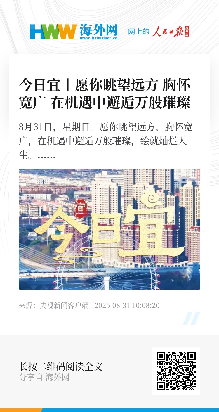 8月31日,星期日。愿你眺望远方,胸怀宽广,在机遇中邂逅万般璀璨,绘就灿烂人生。
