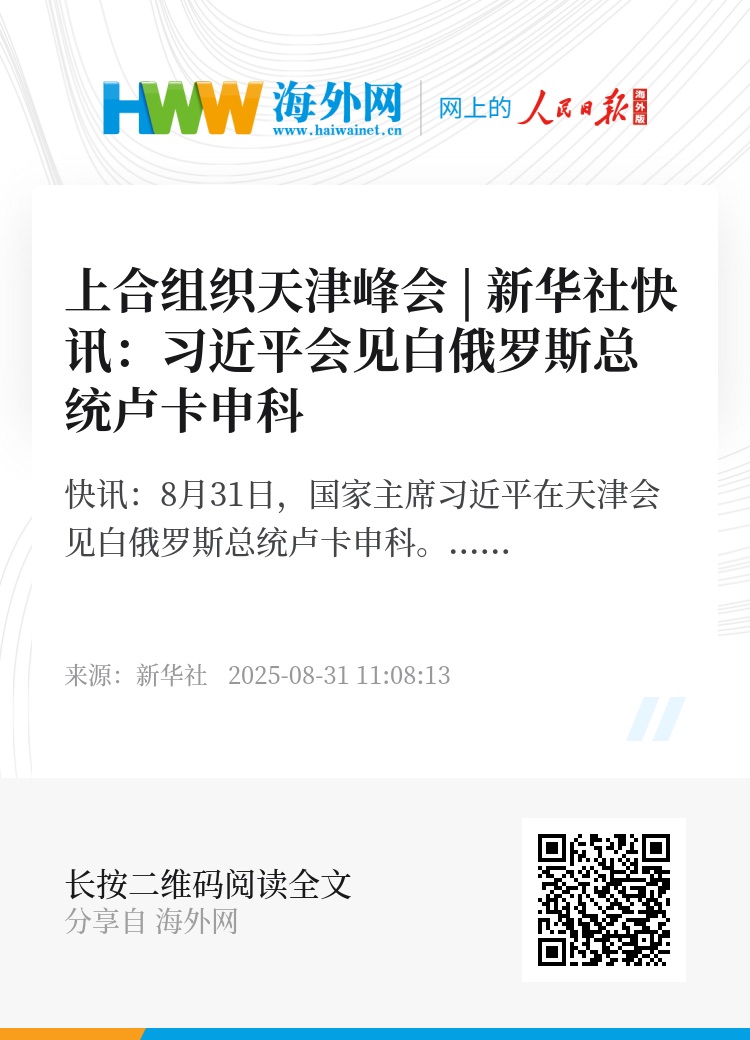 上合组织天津峰会 | 新华社快讯:习近平会见白俄罗斯总统卢卡申科