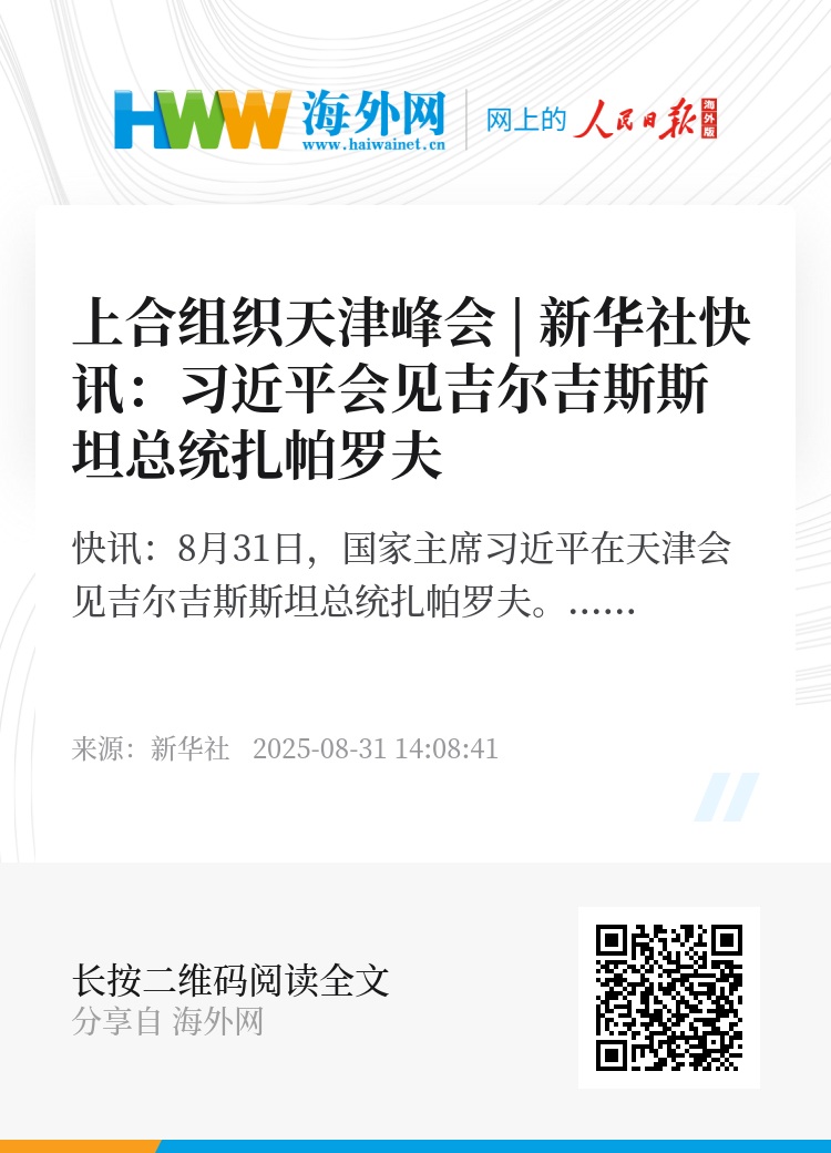 上合组织天津峰会 | 新华社快讯:习近平会见吉尔吉斯斯坦总统扎帕罗夫