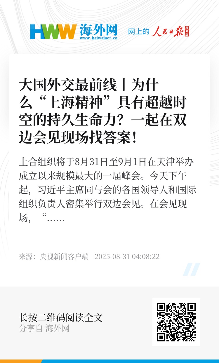 在会见现场,“大国外交最前线”对两个词印象深刻——朋友、初心。从最初6个成员国到如今涵盖26个国家,从“上合”到“上合+”,“上海精神”既是上合组织成立之初心所在,更具有超越时空的持久生命力。
