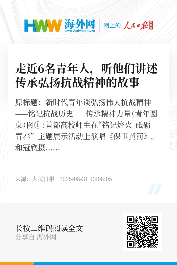 原标题:新时代青年谈弘扬伟大抗战精神——