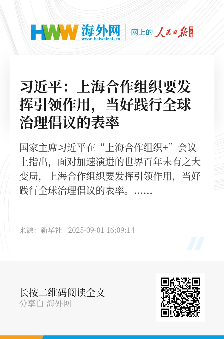 国家主席习近平在“上海合作组织+”会议上指出,面对加速演进的世界百年未有之大变局,上海合作组织要发挥引领作用,当好践行全球治理倡议的表率。
